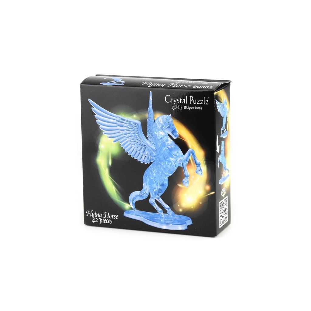 Her får du vores populære 3D Crystal Puzzle, Flying Horse i blå farve, med 42 dele.