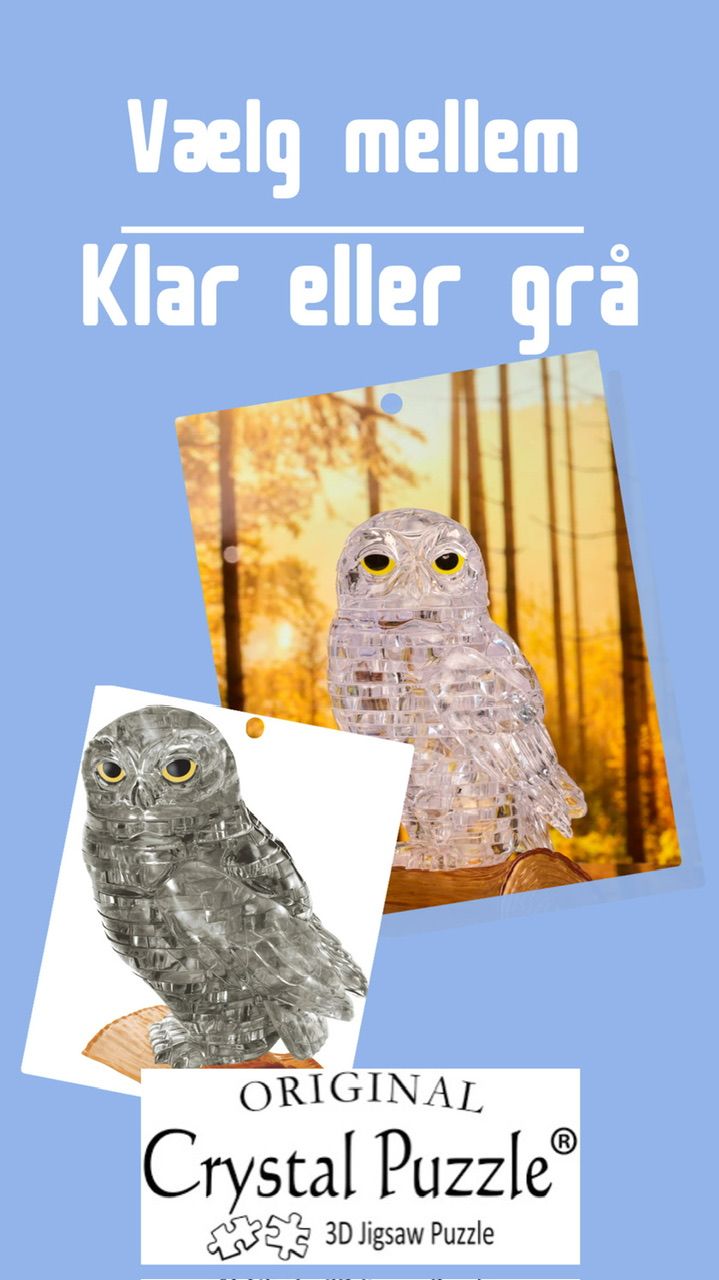 Super fin Crystal puslespil, motiv ugle. Du kan vælge mellem klar, grå eller guld. Super idé til gave.