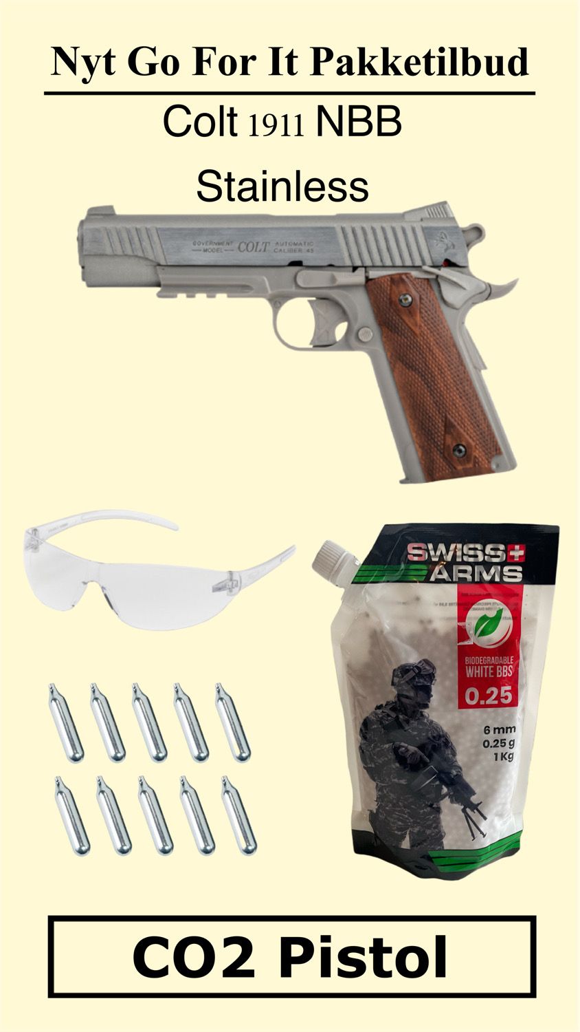 “GO FOR IT” pakke tilbud med: Colt 1911 Rail Gun, Stainless.