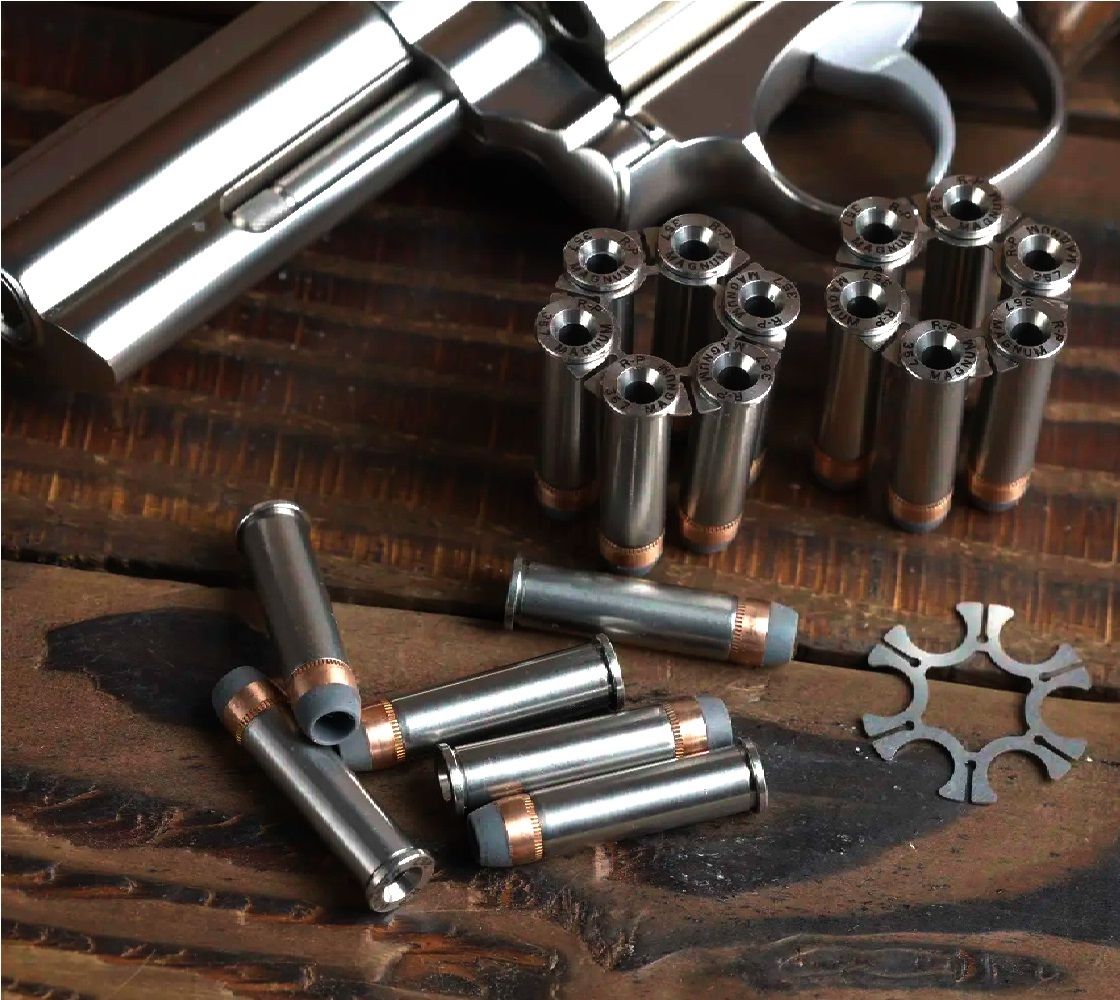 i den medfølgende moonclip for hurtig at lade patronerne i cylinderen.