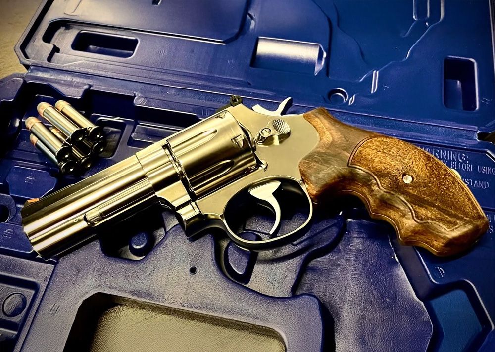 Ares revolver er lavet med realistisk finish som ægte valnøddegreb,