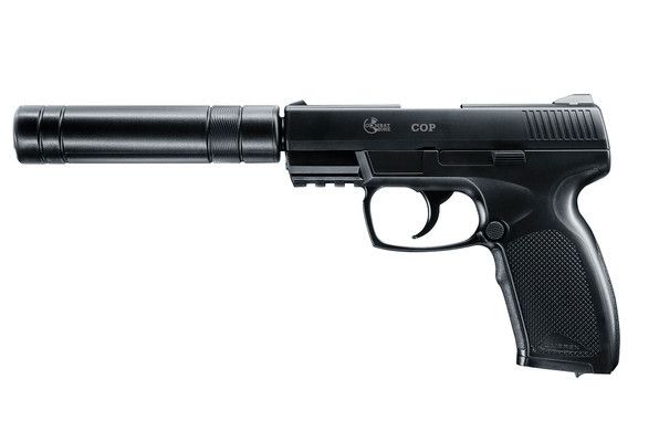 Go for it Airsoft tilbud, Softgun CO2 pistol Combat Zone COP SK med lyddæmper, uden blow back.