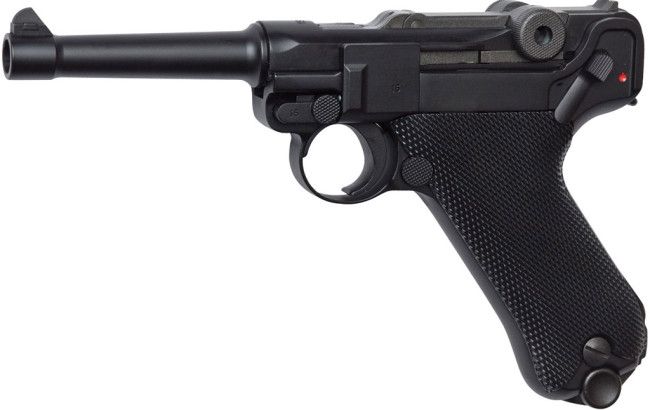 Pakketilbuddet indeholder en Airsoft CO2 Pistol: Legends P08, fuld metal, uden blow back.