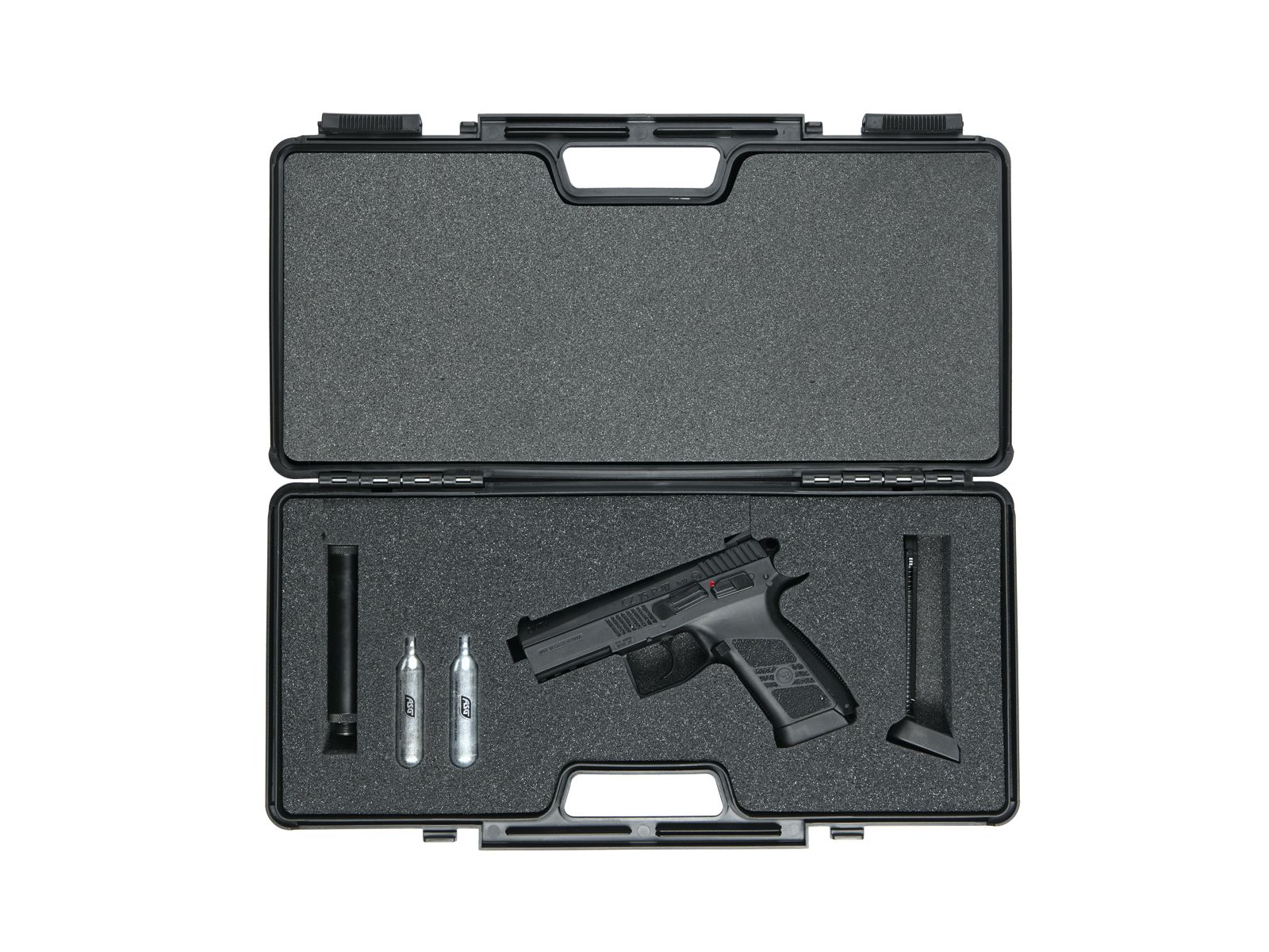 CO2 patroner, et magasin og løbsforlænger.