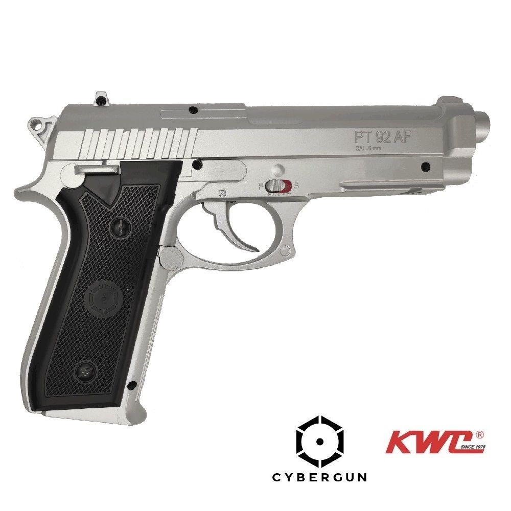 Softgun/Airsoft PT92 fra Cybergun, Chrome med fast slæde