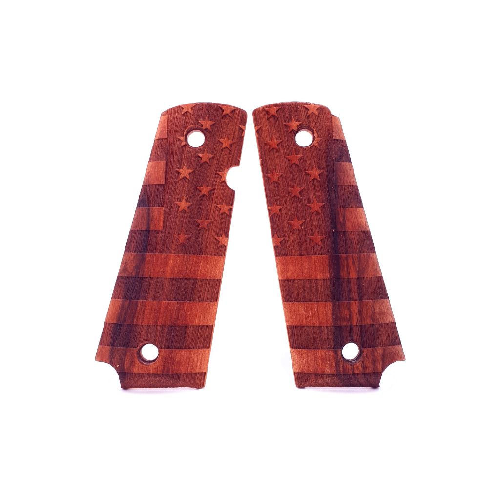 Disse ægte træskaller i flot finish giver din KWC 1911 pistol et